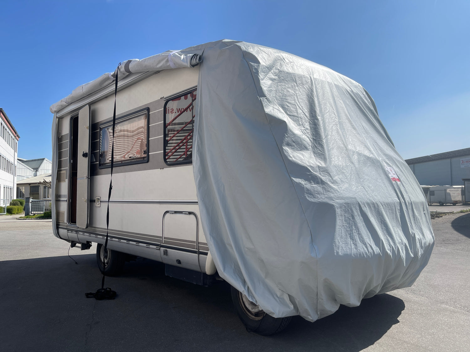 Dank der individuellen Fertigung jeder Abdeckplane für Wohnwagen bieten wir Ihnen nicht nur einen umfassenden Schutz vor Witterungseinflüssen wie Regen, Schnee oder UV-Strahlen, sondern auch vor Schmutz, Vogelkot und Baumharzen. Unsere maßgeschneiderten Abdeckungen sorgen so für einen langanhaltenden Werterhalt Ihres Wohnwagens und garantieren eine lange Lebensdauer der Plane selbst.